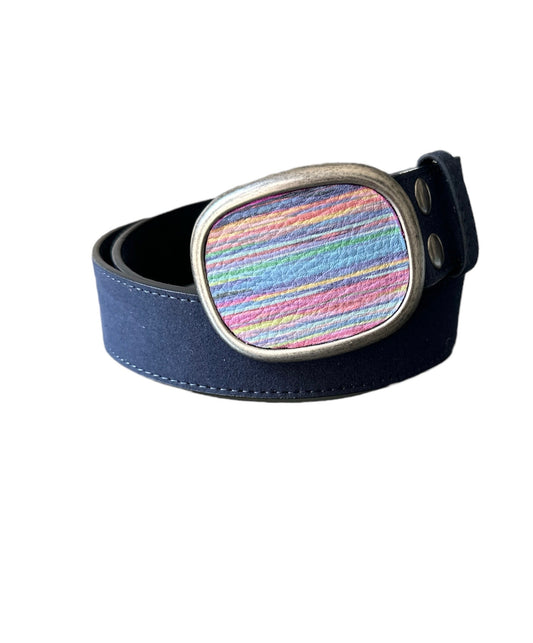 Our handcrafted leather belt buckles feature unique embossed leathers and studded accents...