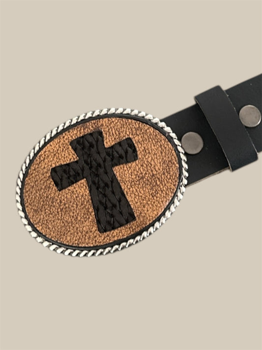 Our handcrafted leather belt buckles feature unique embossed leathers and studded accents...