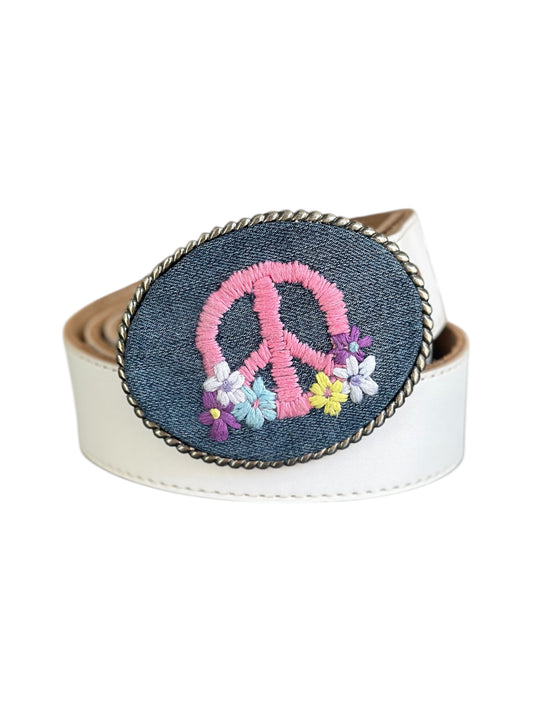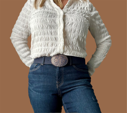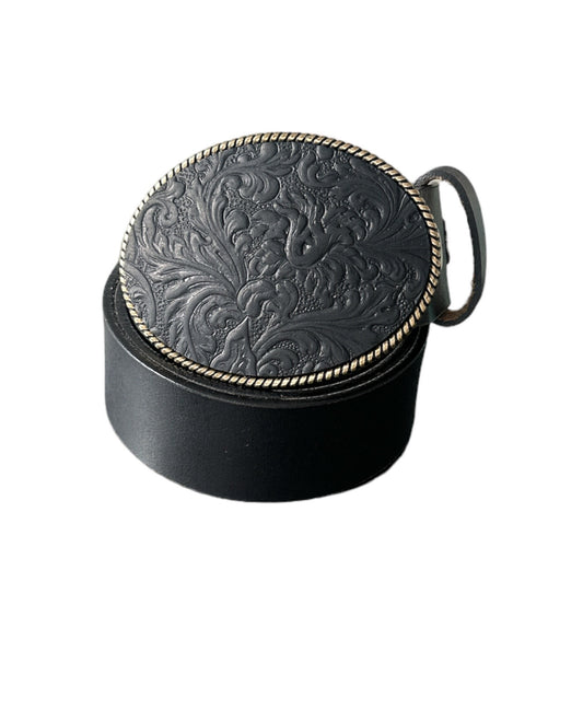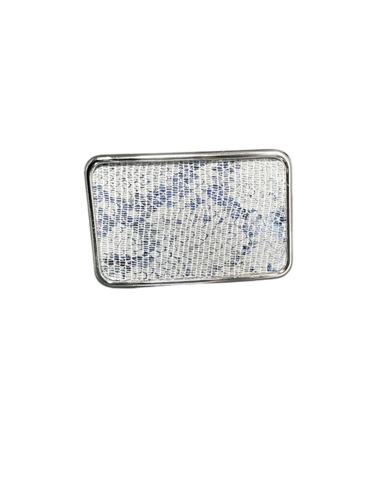 Metallic Rose Gold and Blue Embossed Leather Belt Buckle