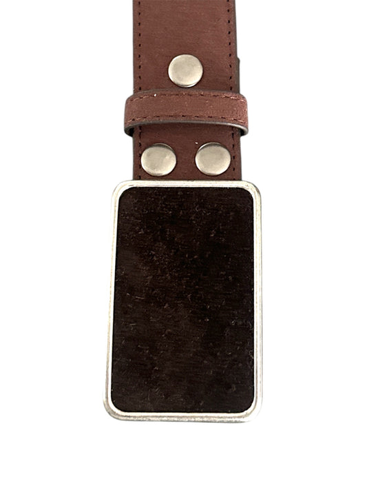 Rectangular Dark Rich Brown Suede Belt Buckle