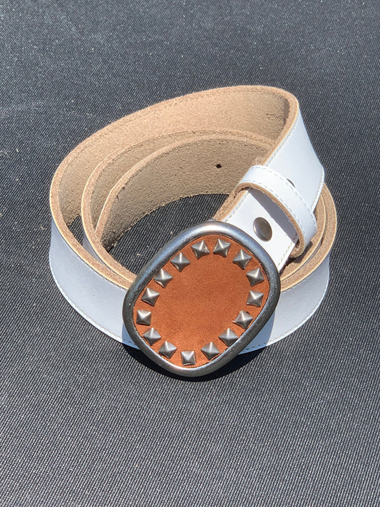Studded Cognac Brown Suede Oval Belt Buckle
