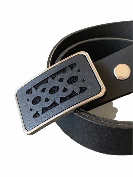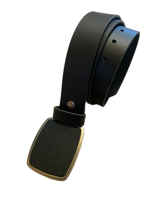 Rustic Black Genuine Leather Belt Buckle