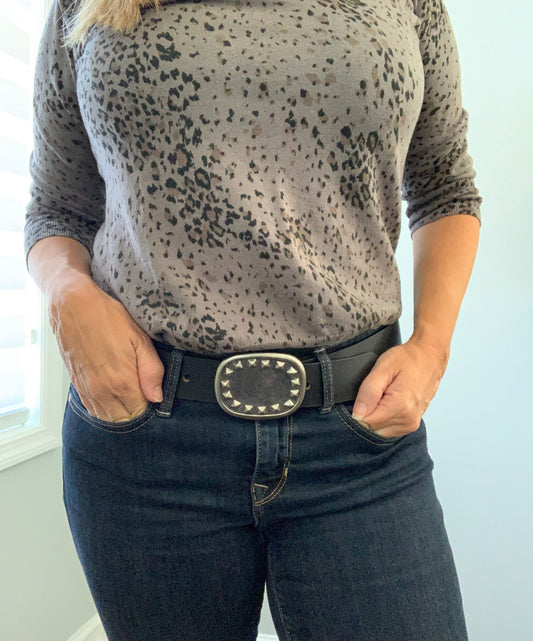 Studded Black Suede Belt Buckle