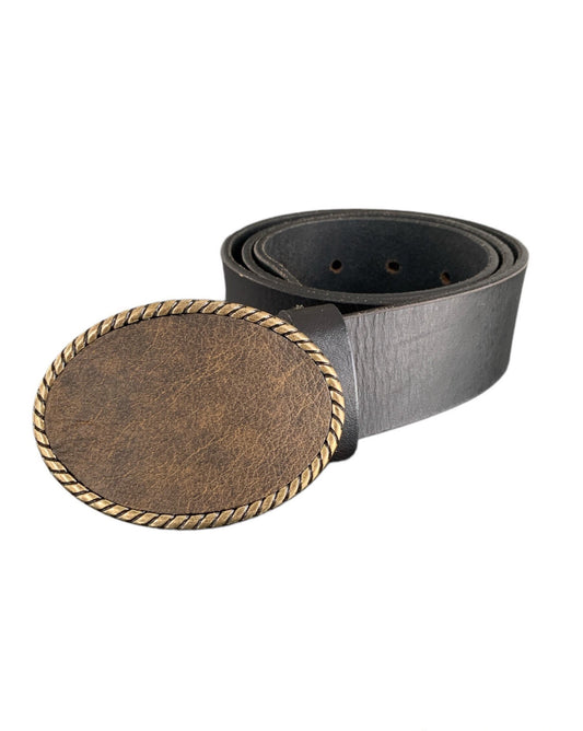 Rustic Brown Leather Oval Rope Belt Buckle