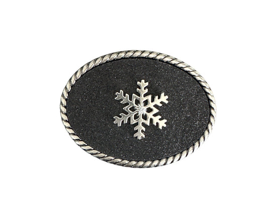 Snowflake Black Glitter Leather Belt Buckle