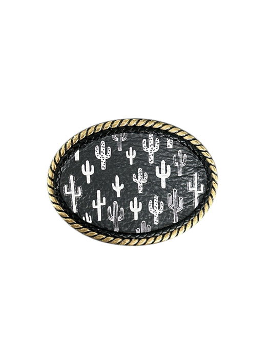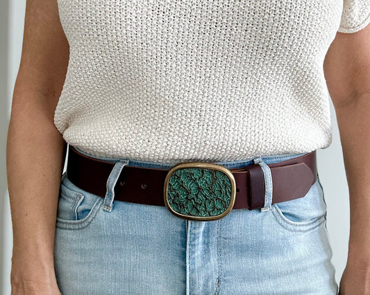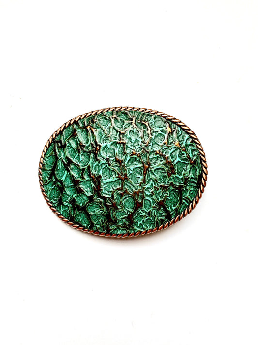 Turquoise Embossed Leather With Bronze Accents Belt Buckle