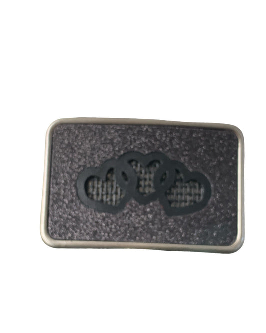 Three Hearts Interlocking Black Glitter Leather Belt Buckle