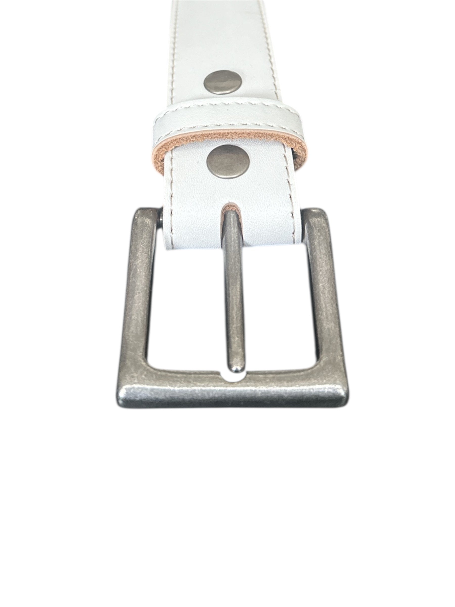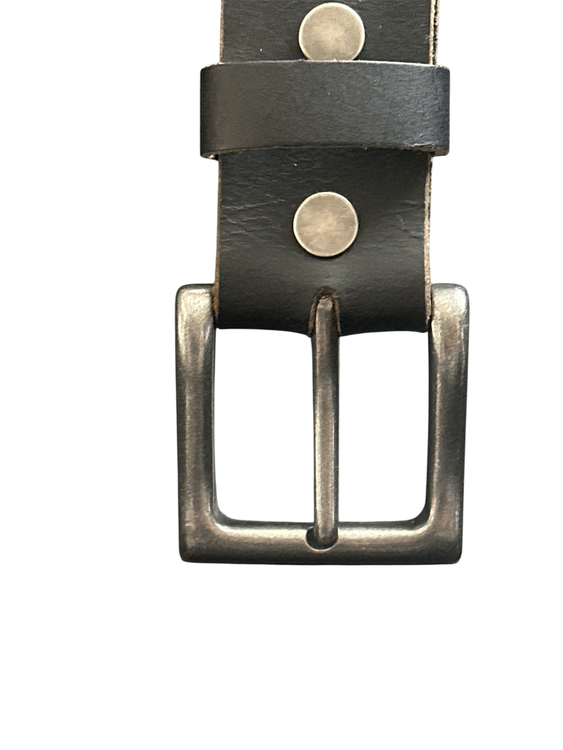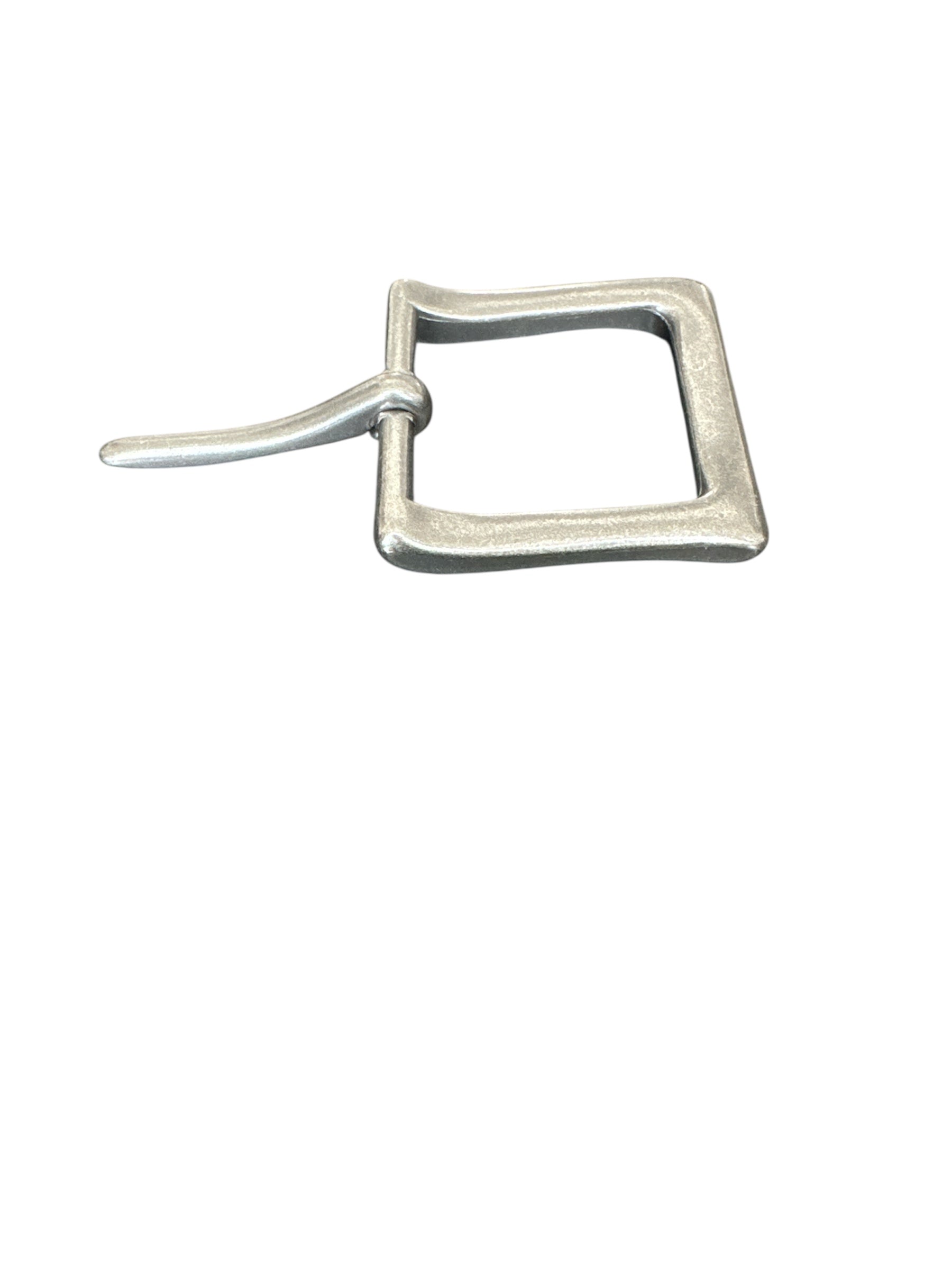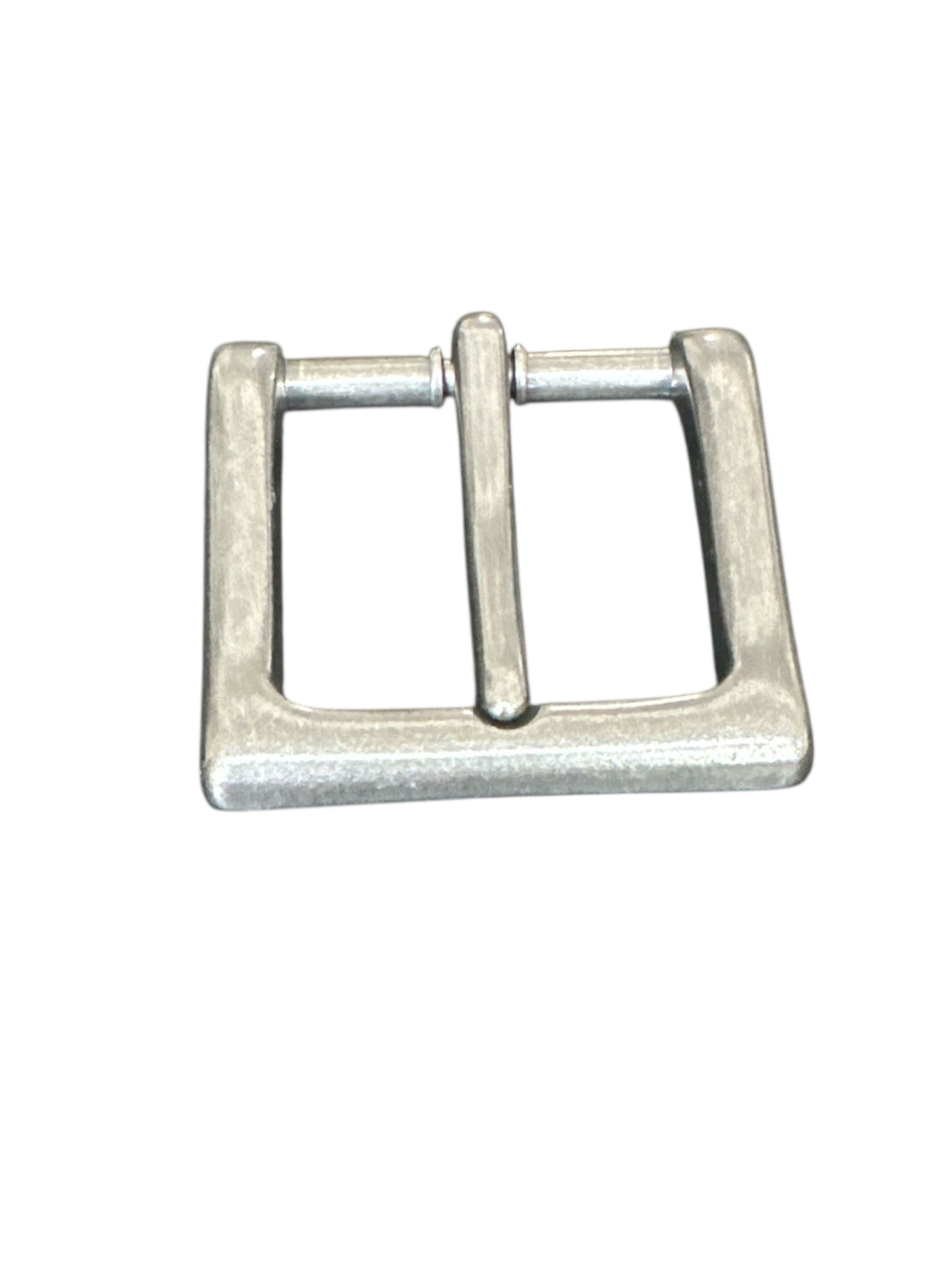 The rustic heel bar belt buckle is an interchangeable buckle that easily snaps onto your belt. The buckle has a square shaped top. The buckle has a nice weight not flimsy and a little glossy shine to it.