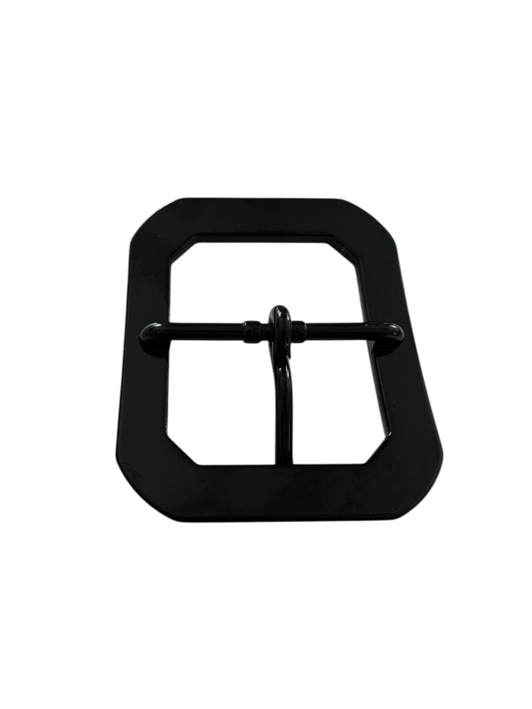 The black center bar belt buckle is an interchangeable buckle that easily snaps onto your belt. The buckle has a rectangular shape. The buckle has a nice weight not flimsy and a little glossy shine to it.