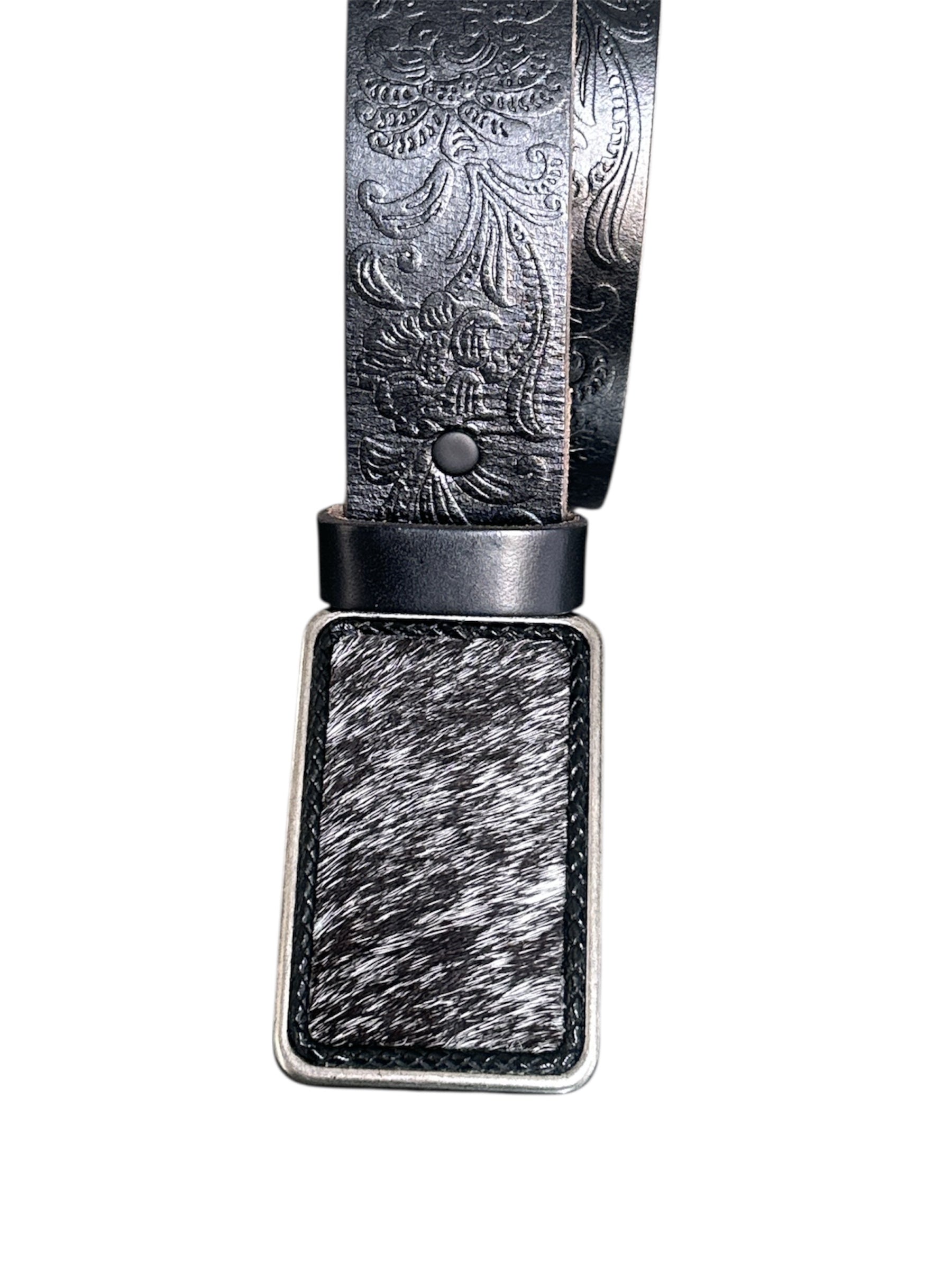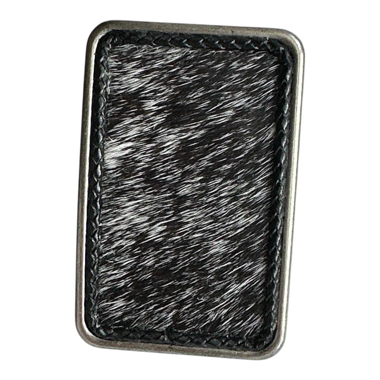 Black White Hair on Leather Rectangular Belt Buckle