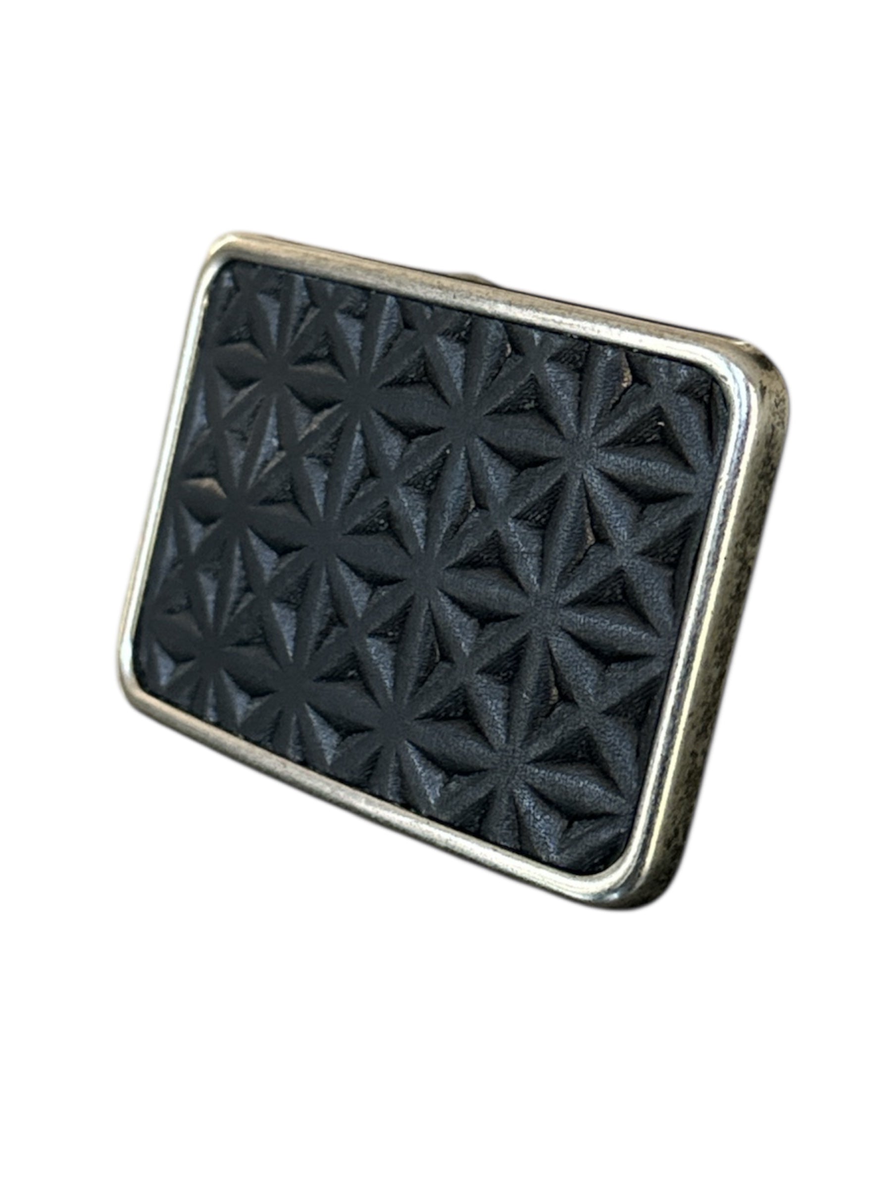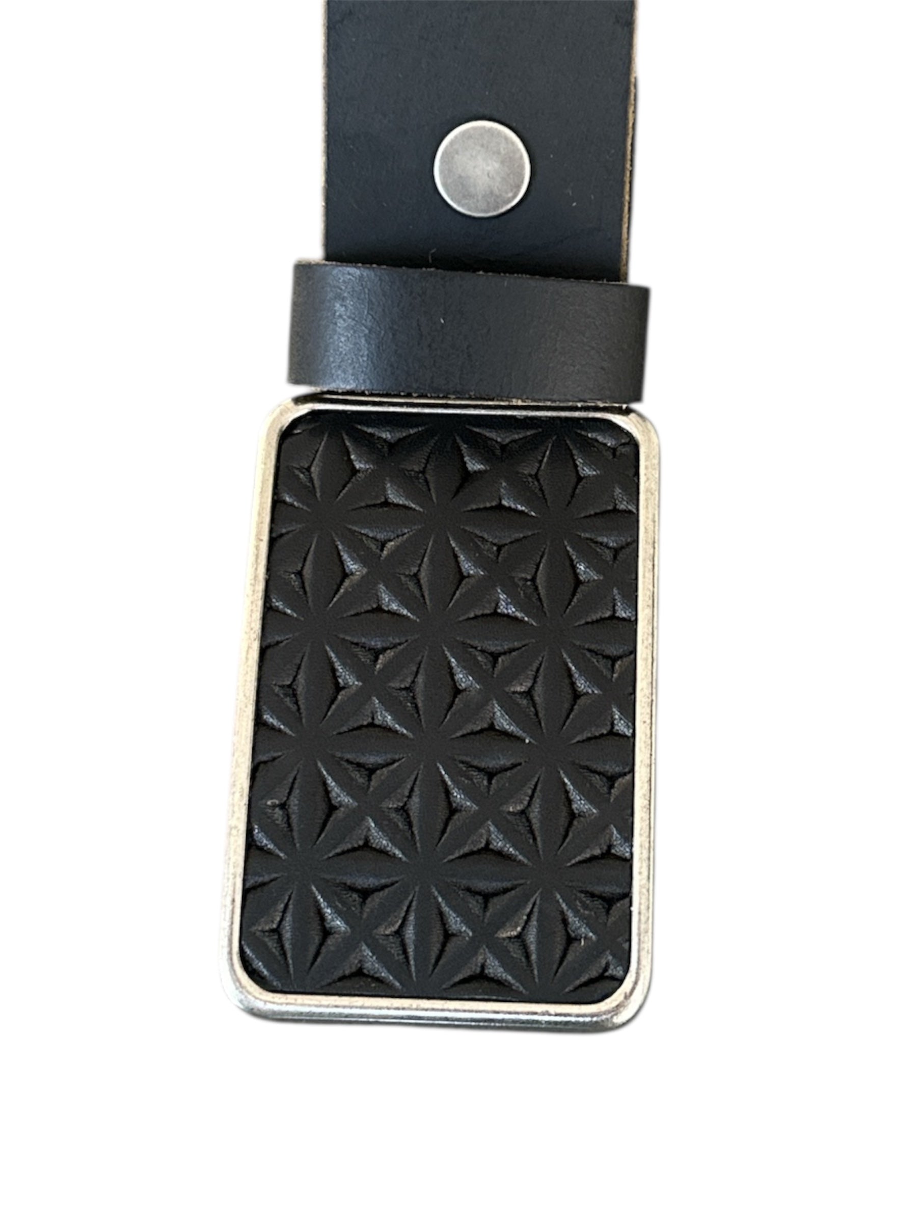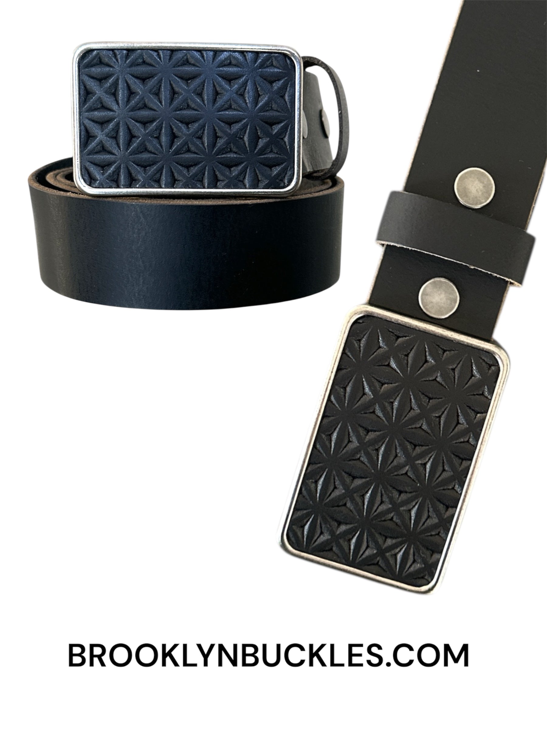 Embossed Black Leather Rectangular Belt Buckle in Antique Silver or Antique Brass