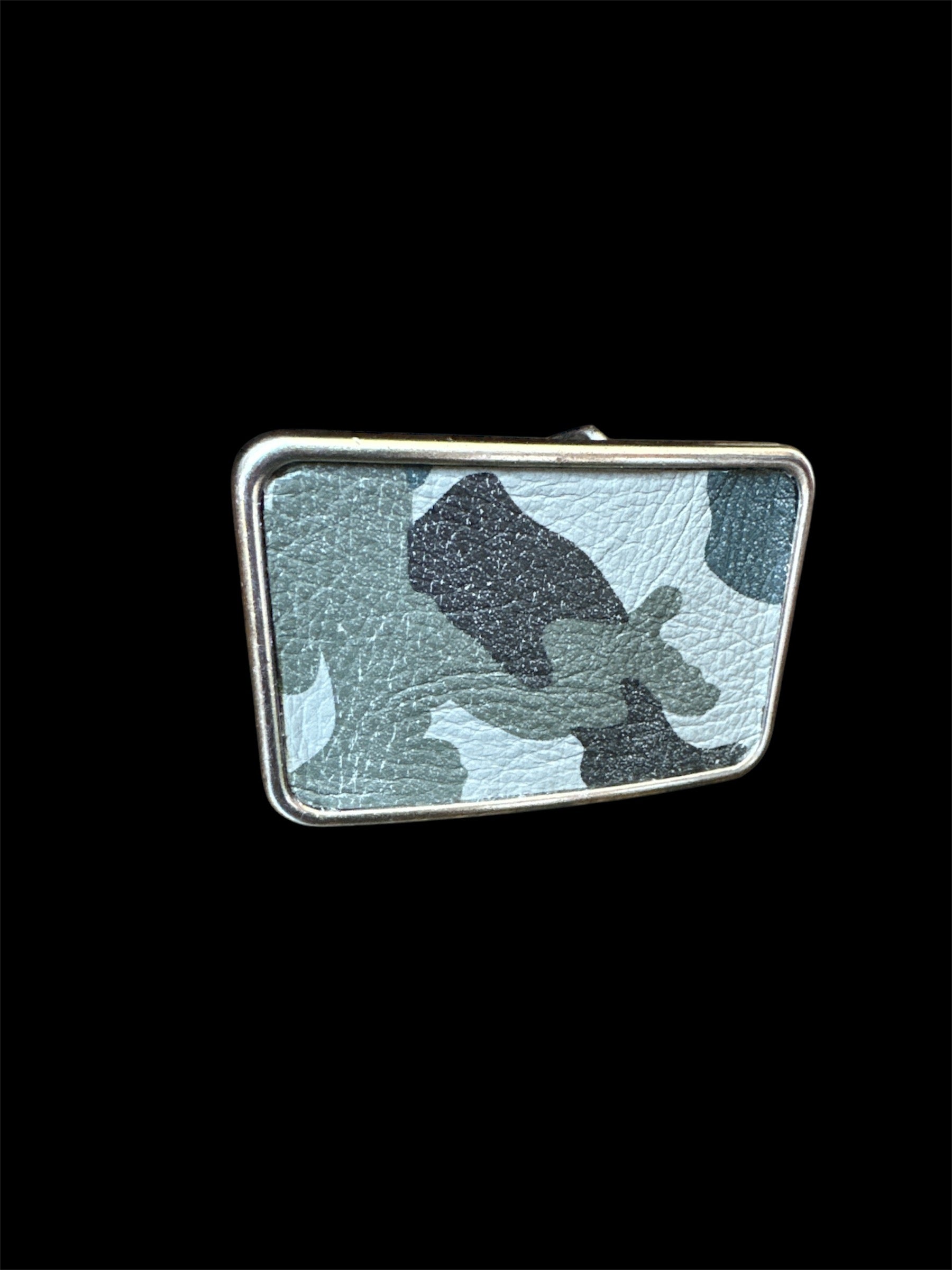 Gray Camouflage Leather Rectangular Belt Buckle
