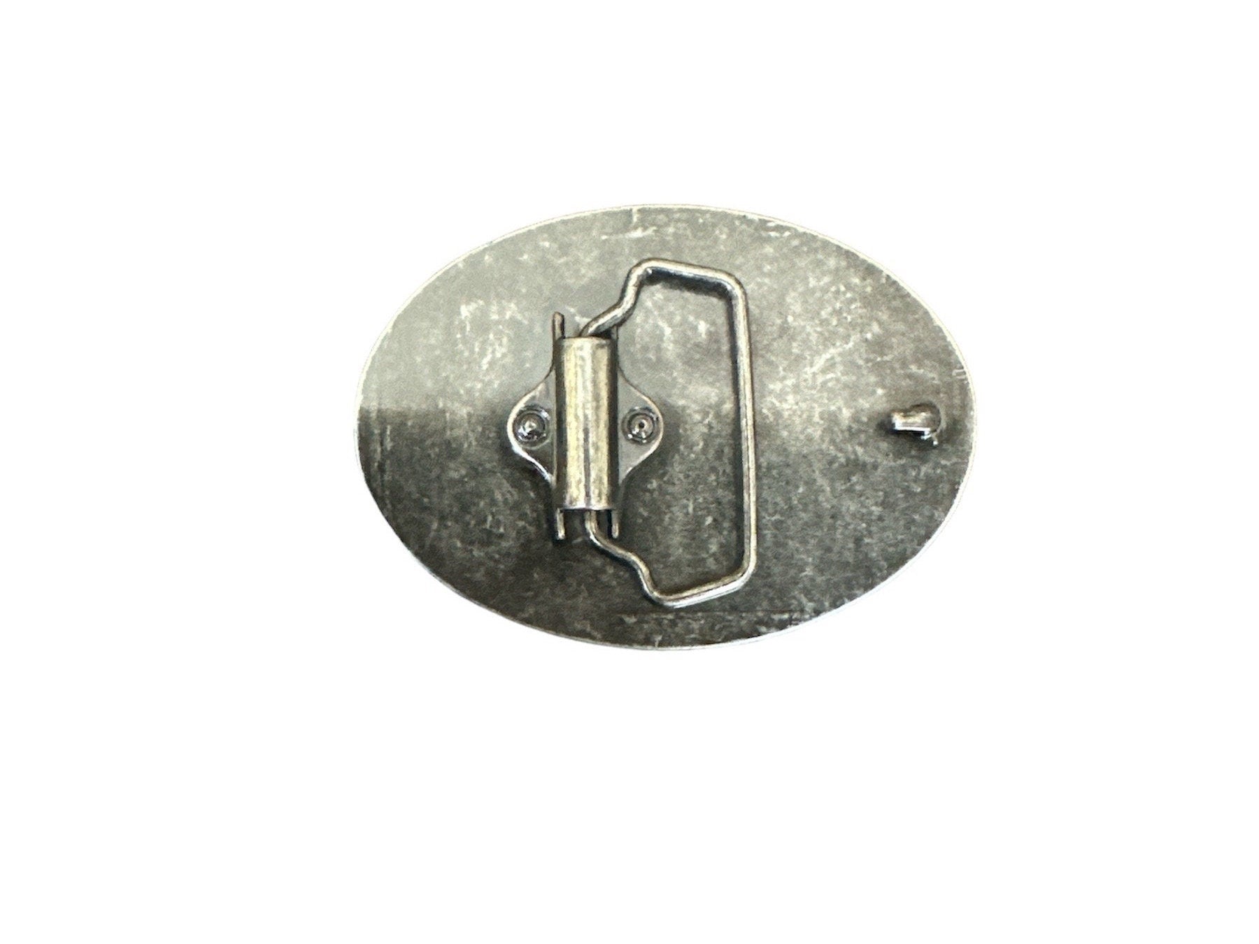 The buckle fits belts up to a belt width of 1 1/2 inches. The buckle dimensions 3 inches x 2 1/2 inches.