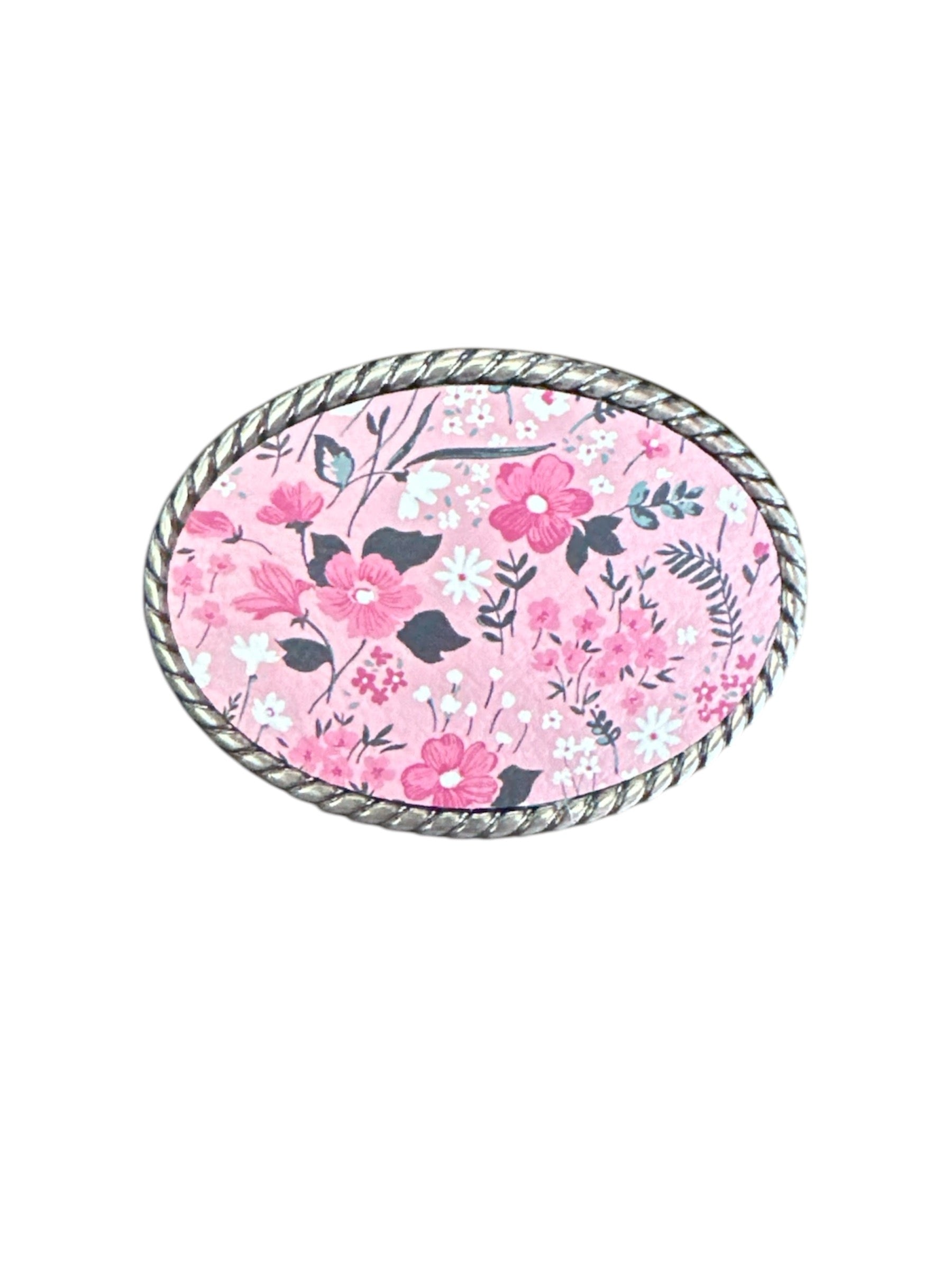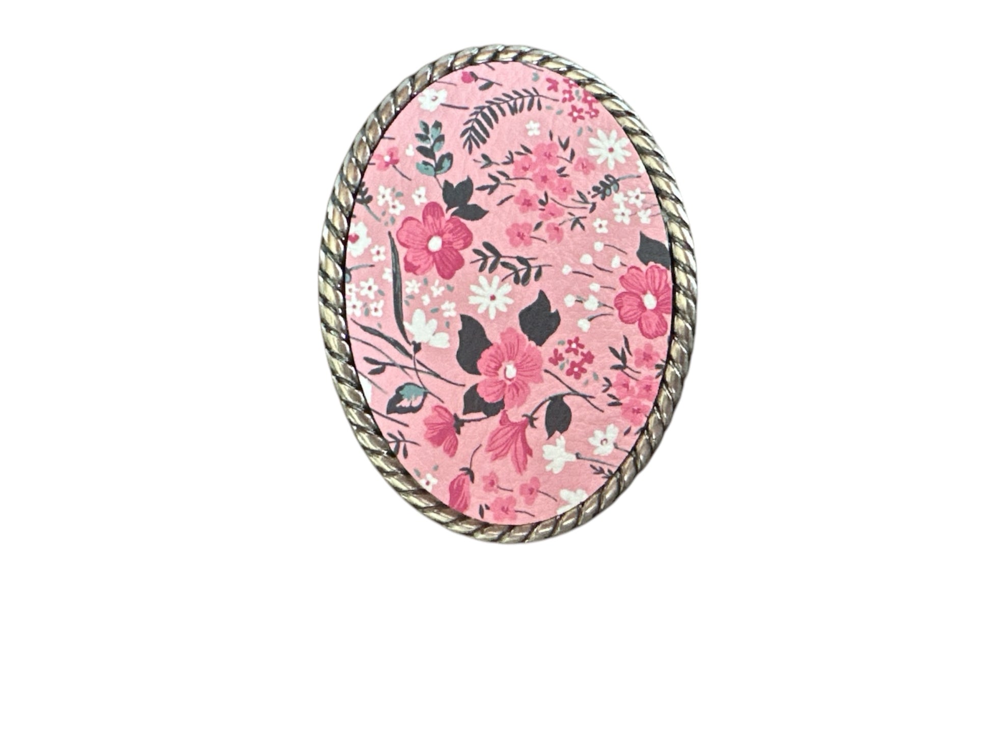 A flower leather belt buckle really makes a statement. Every belt needs an eye catching buckle which will definitely be the focal point of your outfit! The floral genuine leather is designed on an oval rope buckle which is easy to add to your favorite belt. Dress up your outfit when it needs a little extra something. The buckle can be paired with many of Brooklyn Buckles interchangeable snap belts. The buckles come in antique silver finish.