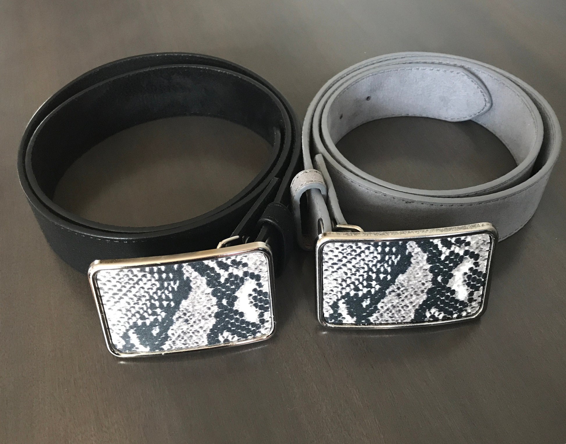 The python printed or snake skin print buckle is handmade and designed with a silver tone buckle. Snake print is very trendy and stylish. It's a must have accessory for your wardrobe. This listing is for the buckle only and the belt can be purchased at an additional cost. The buckle can be paired with an interchangeable snap belt.