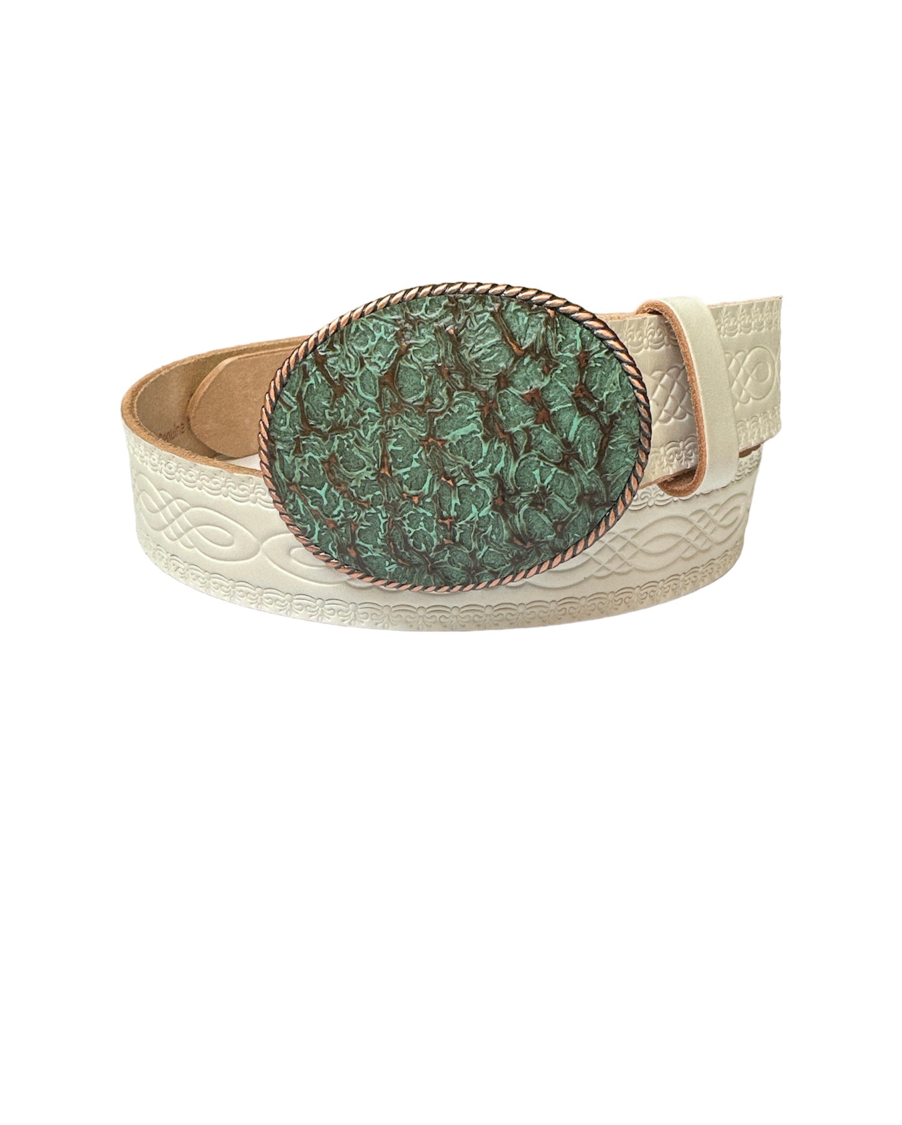 Turquoise Embossed Leather With Bronze Accents Belt Buckle