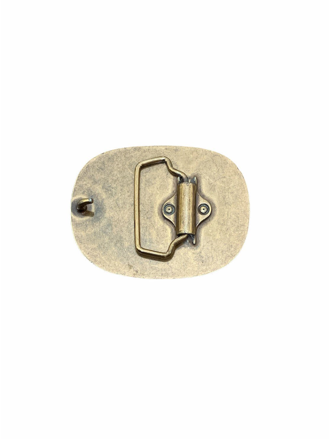 The oval buckle is interchangeable with a no buckle belt. The buckle easily can snap onto an interchangeable belt and instantly can change the look of your outfit. This buckle looks great with a black, white and even brown belt. The oval buckle really makes a statement and looks great with a pair of jeans and boots.